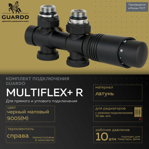 Купить Универсальный комплект для нижнего подключения Guardo Multiflex+ R R9005(M) с термоголовкой, черный матовый (правый) с доставкой по всей России. Универсальный комплект для нижнего подключения Guardo Multiflex+ R R9005(M) с термоголовкой, черный матовый (правый): сравнение цен, характеристики, фото, актуальное наличие и цены.