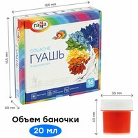 Гуашь выпускается в удобных баночках по 20 мл каждая, что обеспечивает легкость хранения и использования. В комплекте идет одна упаковка с 16 цветами, что позволяет детям создавать разнообразные и яркие работы.