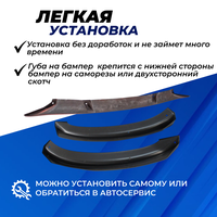 Крепится с нижней стороны бампер на саморезы (надежнее) или двухсторонний скотч.