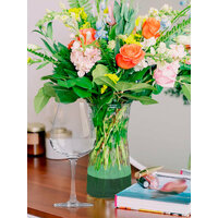 Флористическая губка или пена – это легкий пористый синтетический материал, прекрасно впитывающий воду и надежно фиксирующий цветы в композиции. Именно за эти свойства её так любят флористы. Особая структура пористого материала быстро впитывает нужное количество воды (в 40 раз превышающий собственный вес) и долго удерживает ее, продлевая жизнь цветам. Удобна в использовании - легко режется, благодаря чему ее можно запросто подогнать под форму используемого сосуда. Поставляется в форме брикета или, как ее часто называют в народе, «кирпич» является идеальной почвой для цветочных композиций из срезанных цветов. Размер: 23 х 11 х 7 см. У губки есть две функции: 1-я – сохранять влагу и продлить жизнь срезанным цветам. Благодаря антибактериальной пропитке стебель не гниет, а флор-вещества подпитывают растение. 2-я функция – служить каркасом для всей композиции из цветов. Очень легко создать нужный уровень наклона стебля в флористической пене. Поэтому она позволяет реализовать любую, даже самую неожиданную идею (фигурные композиции в виде сердца или шара). Перед тем как приступить к изготовлению композиции, ее помещают в воду, чтобы она впитала в себя достаточное количество влаги. Обратите внимание, что не стоит усердно топить неподдающуюся губку в воде. Дайте ей, свободно плавая, самой впитать нужный объем воды. Благодаря равномерному распределению воды в губке, цветы на протяжении долгого времени будут получать живительную влагу и, соответственно, ваша композиция будет долго радовать глаз. Этот волшебный флористический кирпич способен удержать стебли растений под нужным углом, уместится в сосуде любой формы и размера, полностью решить вопрос с питанием растений, образованием вредных бактерий и загниванием воды! Она подходит для живых, искусственных цветов, сухоцветов, колосков как никакой иной материал.