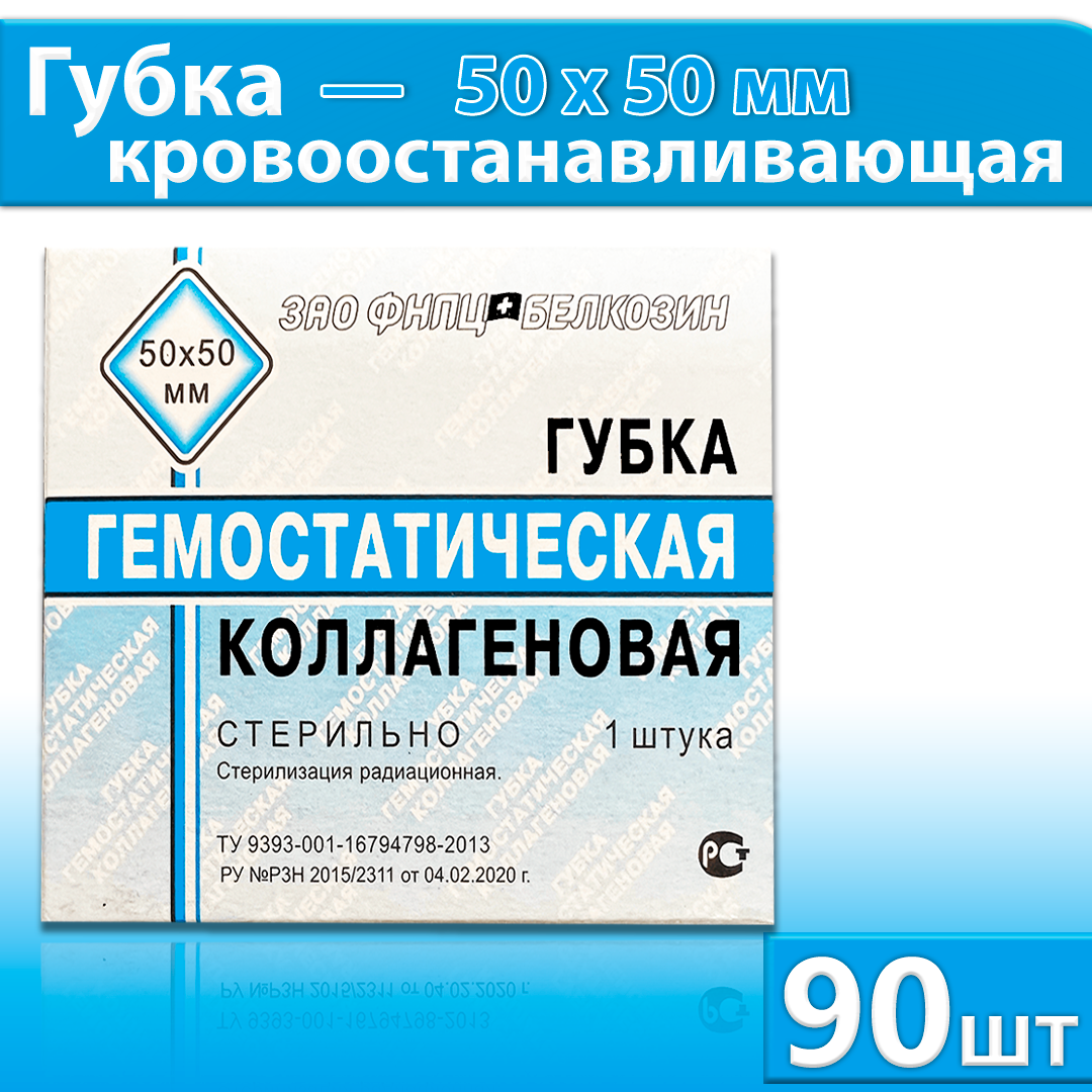 Губка гемостатическая коллагеновая Белкозин, кровоостанавливающая, 50 х 50 мм 90 шт: сравнение цен, характеристики, фото, актуальное наличие и цены.