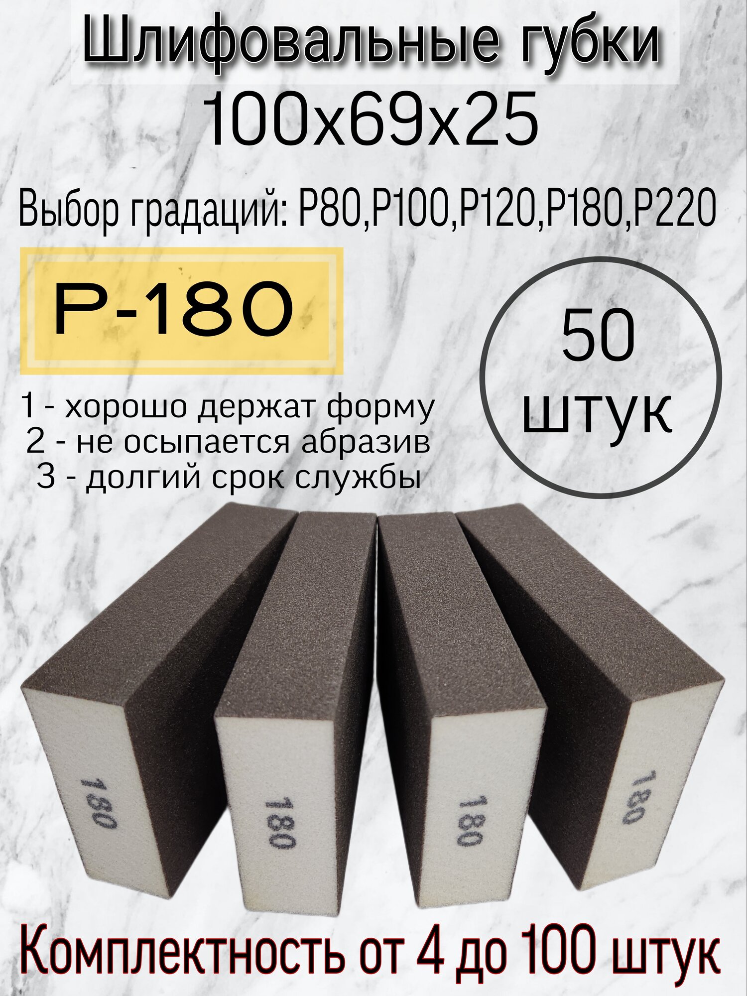 Губка шлифовальная; Р-180 (100шт); 4-х сторонний шлифблок; твёрдый 100х69х25.: сравнение цен, характеристики, фото, актуальное наличие и цены.