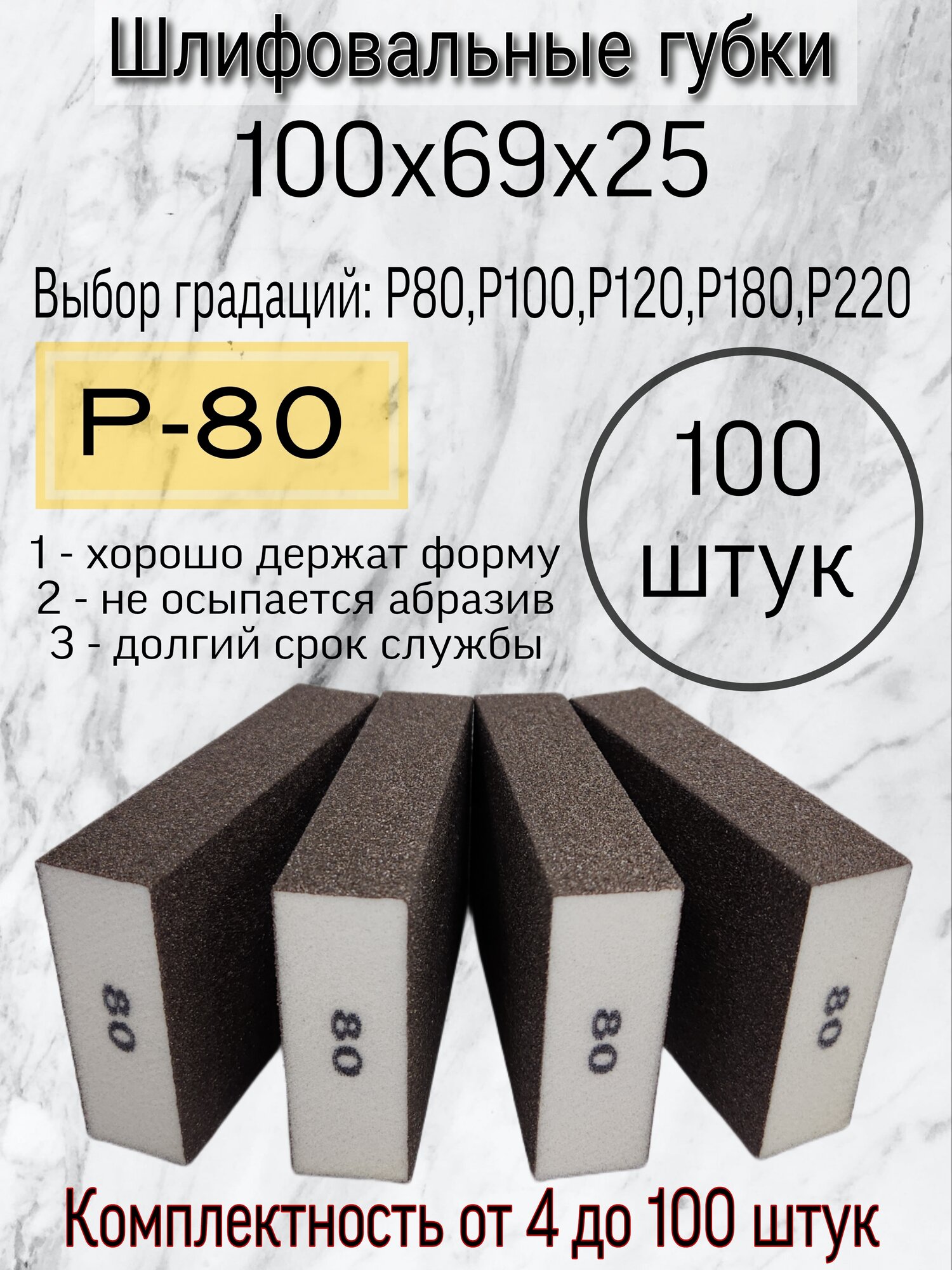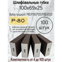 Губка шлифовальная; Р-80 (100шт); 4-х сторонний шлифблок; твёрдый 100х69х25.: сравнение цен, характеристики, фото, актуальное наличие и цены.