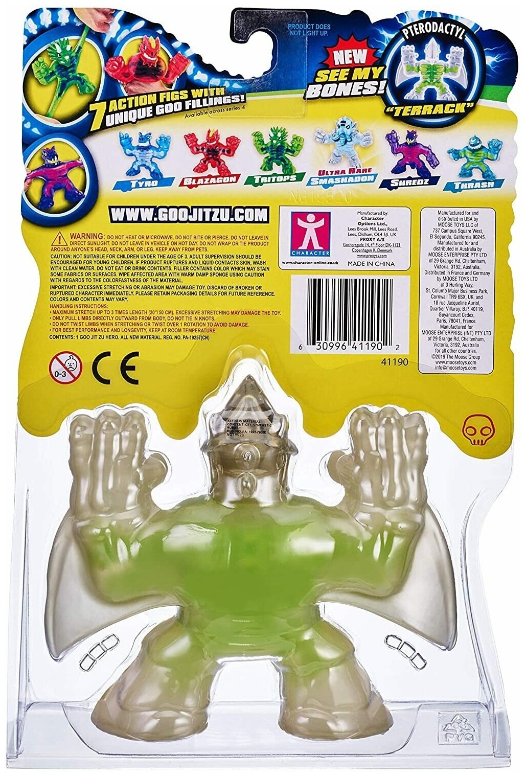 Герои Goo Jit Zu снова в битве в новой серии Dino X-Ray! Приготовьтесь к битве с новыми доисторическими героями - сверхмягкими и растягивающимися, а также с уже полюбившимися персонажами! Каждая фигурка Goo Jit Zu Dino X-Ray имеет уникальное наполнение! Сожмите их и увидите, как их тела растягиваются. Но эти ребята не просто крутые снаружи, они " плохие до мозга костей"! Сожмите их тела и увидите кости сквозь растягивающуюся кожу! Оцените все уникальные виды фигурок Dino X-Ray! Герои Goo Jit Zu Dino X-Ray - это прекрасный способ для детей играть с фигурками, которые не создают беспорядка. Эти игрушки растягиваются в три раза и являются более прочными, чем когда-либо прежде! Растягивайте и сжимайте своих героев Goo Jit Zu, и они всегда будут возвращаться к своей первоначальной форме! 2 новых героя Dino X-Ray, включая ультраредкого Смашадона со светящимися в темноте костями! А также 5 уже известных героев - Блазагон, Трэш, Тиро, Тритопс и Шредз! Сожми, раздави, растяни и собери их всех! Пришло время погромыхать костями! Предупреждение! Не подходит для детей младше 3 лет. Опасность удушья (мелкие детали). Внимание! Не нагревайте и не используйте в микроволновой печи. Не кусать и не прокалывать. Не оставлять под прямыми солнечными лучами. Не оставляйте в автомобиле в жаркий день. Не оборачивайте и не завязывайте изделие вокруг головы, шеи, руки или ноги. Хранить вдали от домашних животных. Не ешьте и не пейте содержимое.