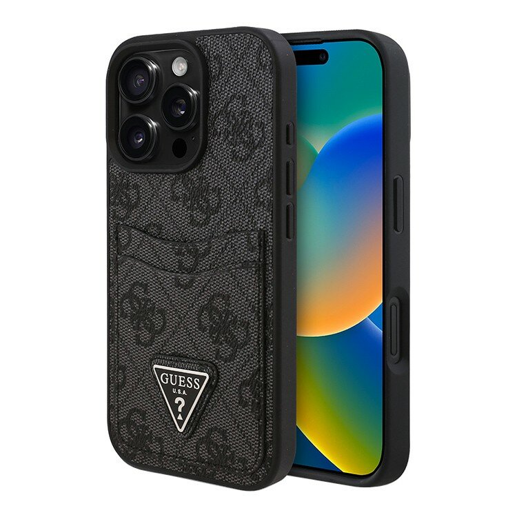 Купить Guess чехол с двойным карманом для карт на iPhone 16 Pro Max, PU-кожа 4G Triangle metal logo черный с доставкой по всей России.