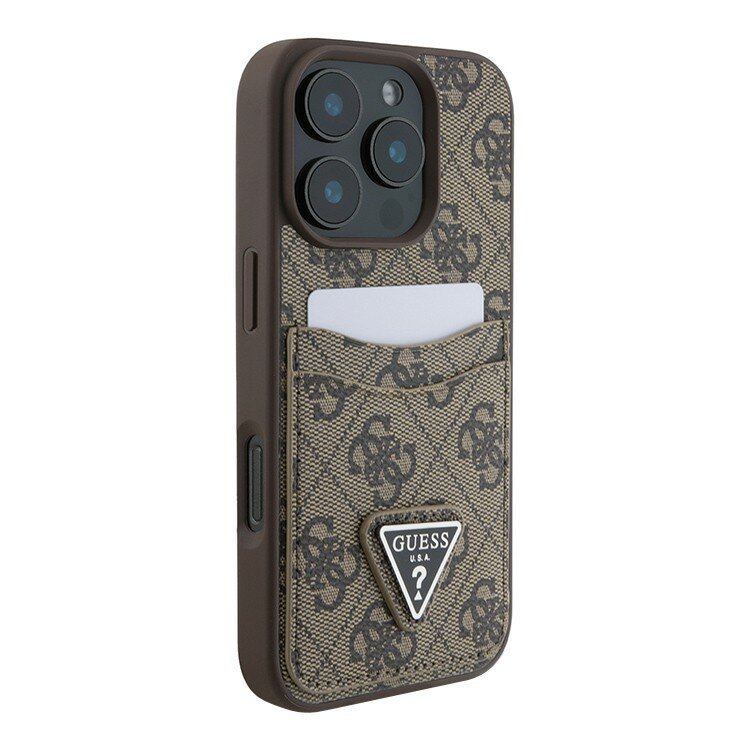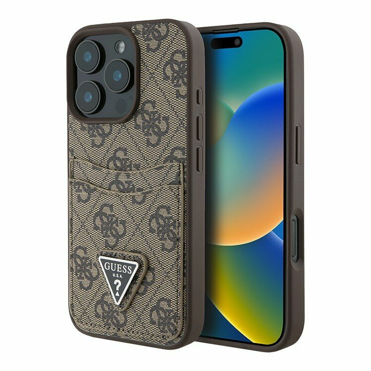 Купить Guess чехол с двойным карманом для карт на iPhone 16 Pro Max, PU-кожа 4G Triangle metal logo коричневый с доставкой по всей России.