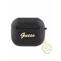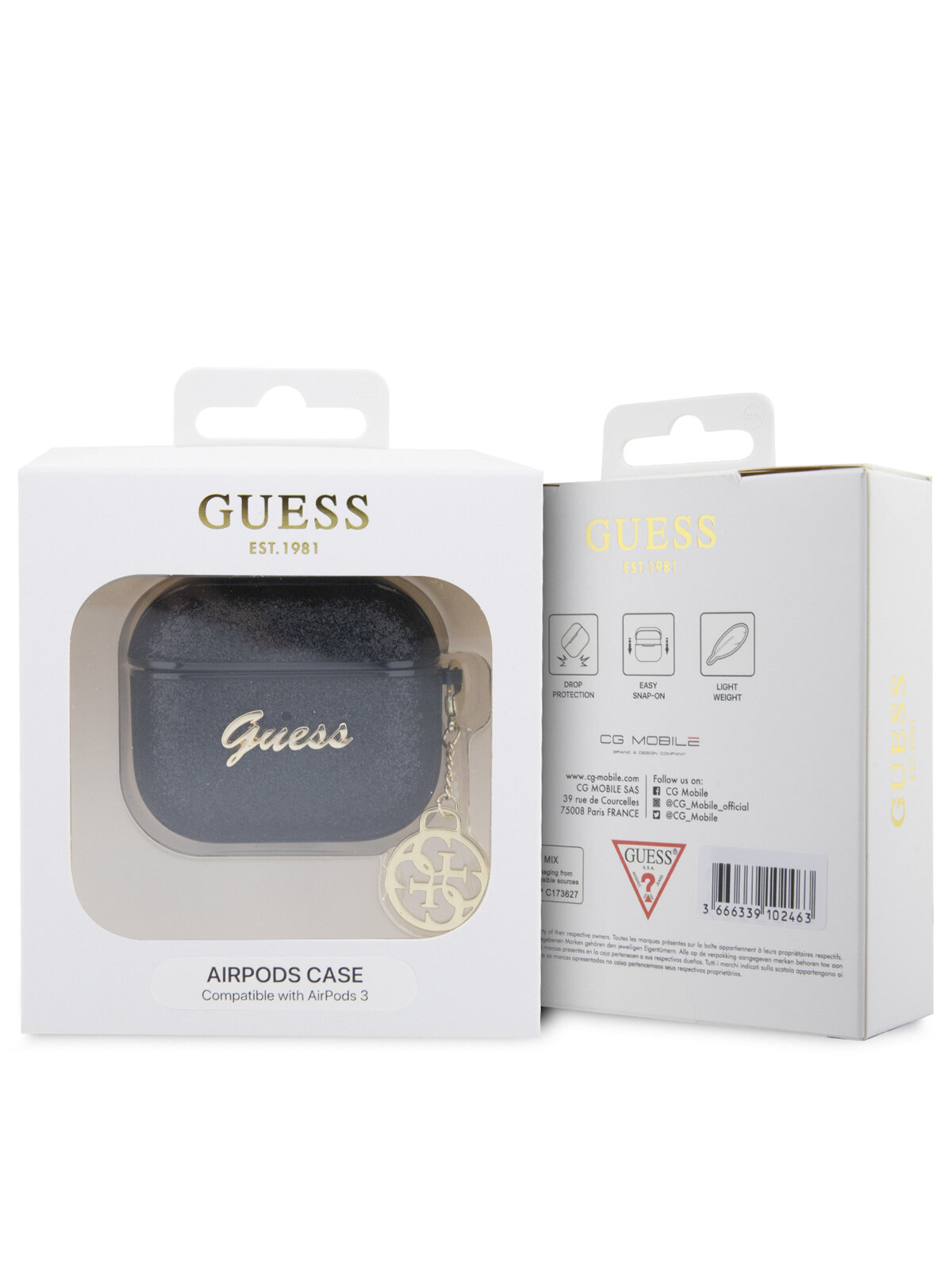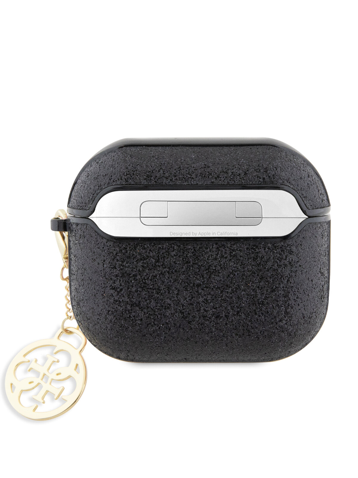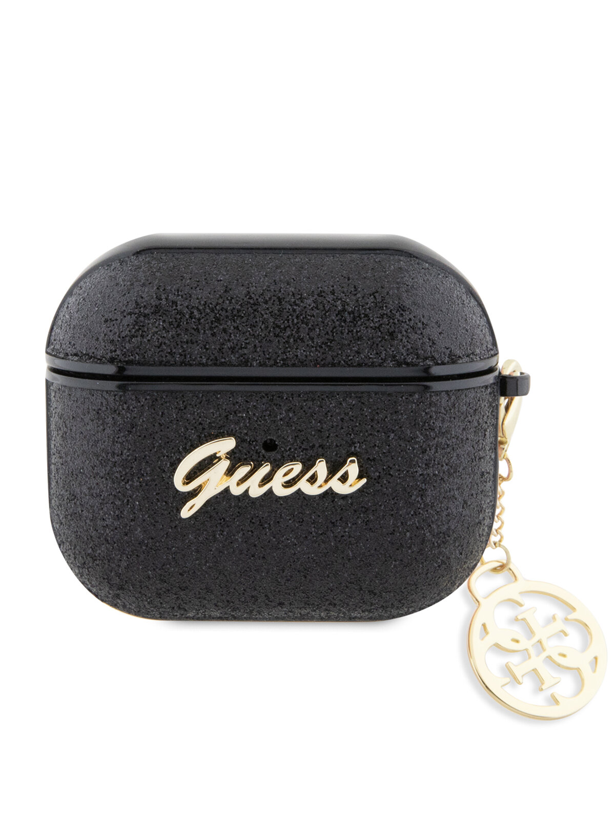 Купить Guess чехол для Airpods 3, мерцающие блестки Glitter flakes+метал. лого+подвеска, черный с доставкой по всей России.