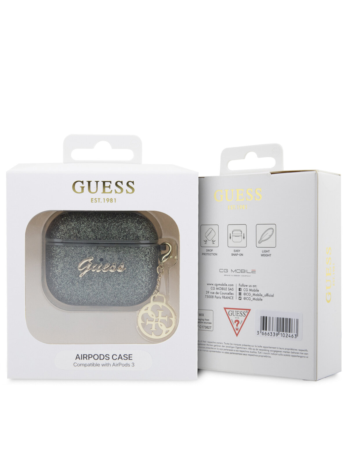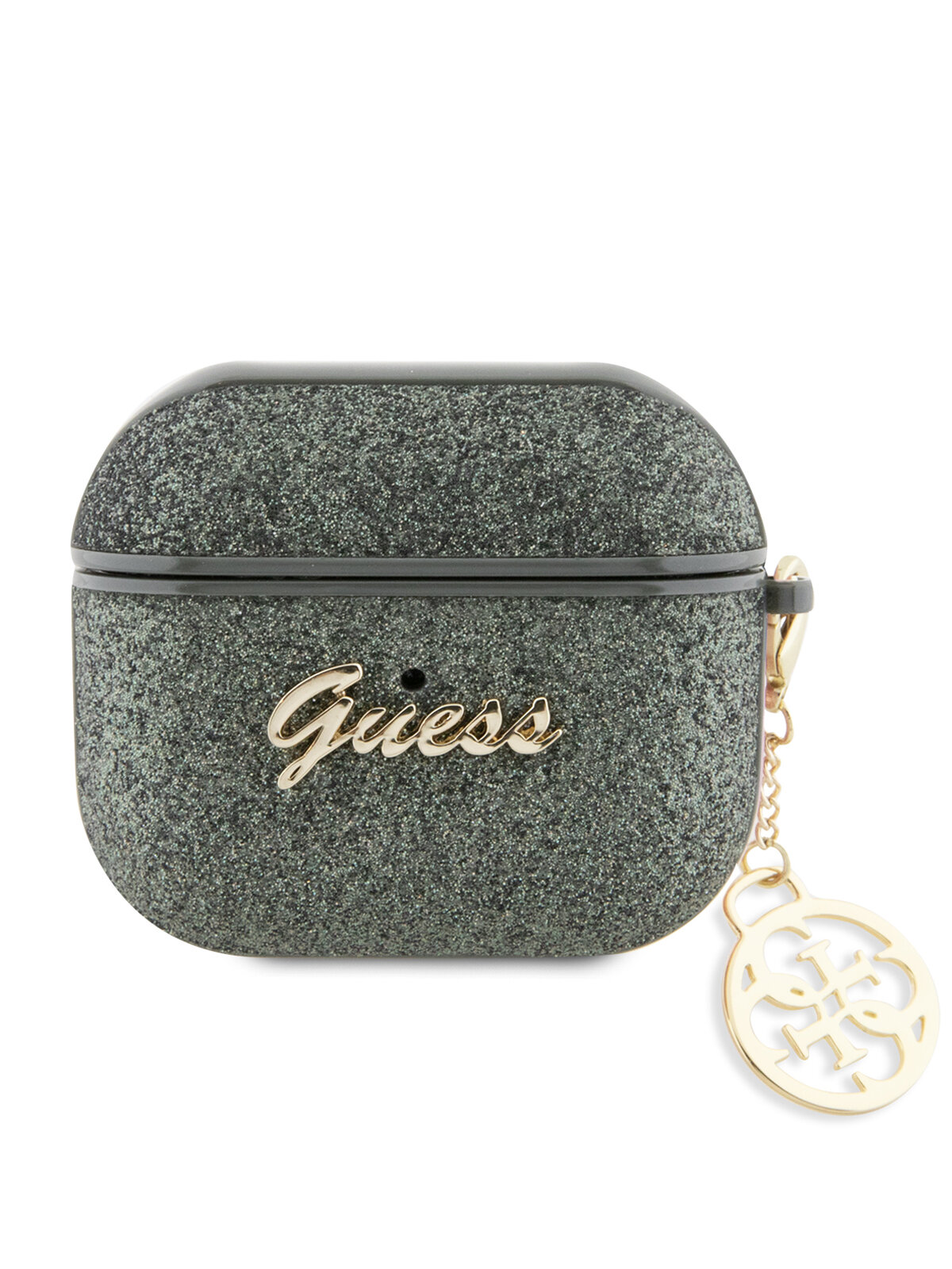 Купить Guess чехол для Airpods 3, мерцающие блестки Glitter flakes+метал. лого+подвеска, зеленый с доставкой по всей России.