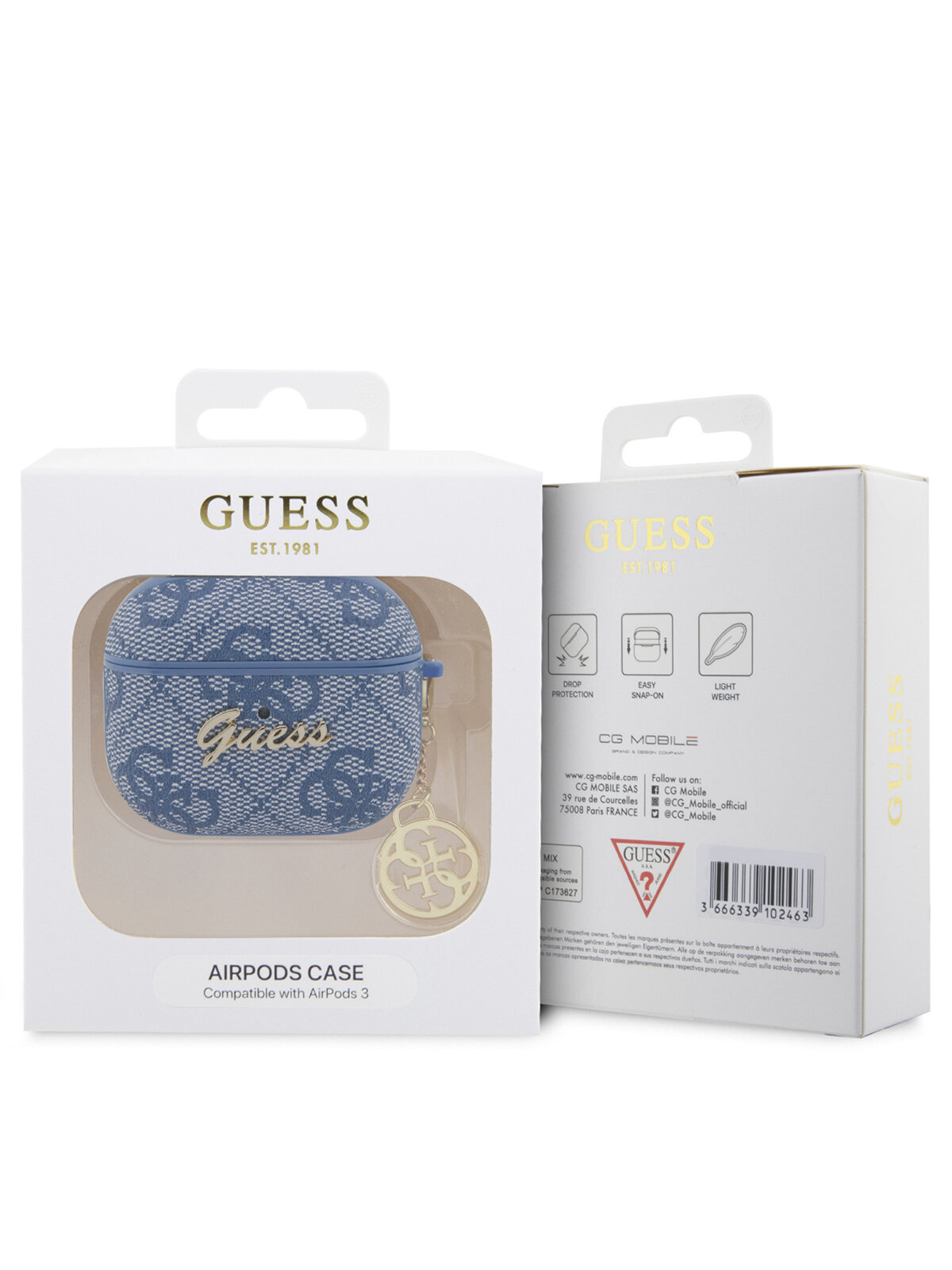 Купить Guess чехол для Airpods 3, PU-кожа 4G Script метал. лого и подвеской голубой с доставкой по всей России.