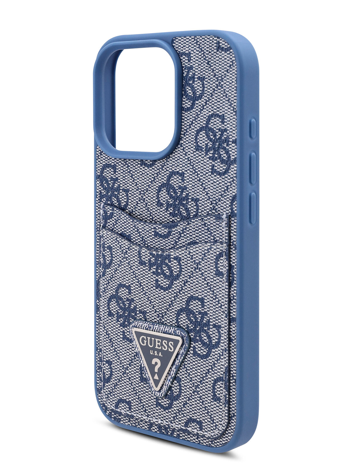 Купить Guess для iPhone 16 Pro чехол PU 4G Double cardslot Triangle metal logo Hard Blue с доставкой по всей России.