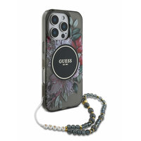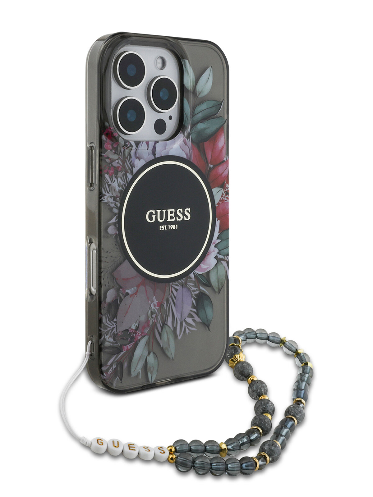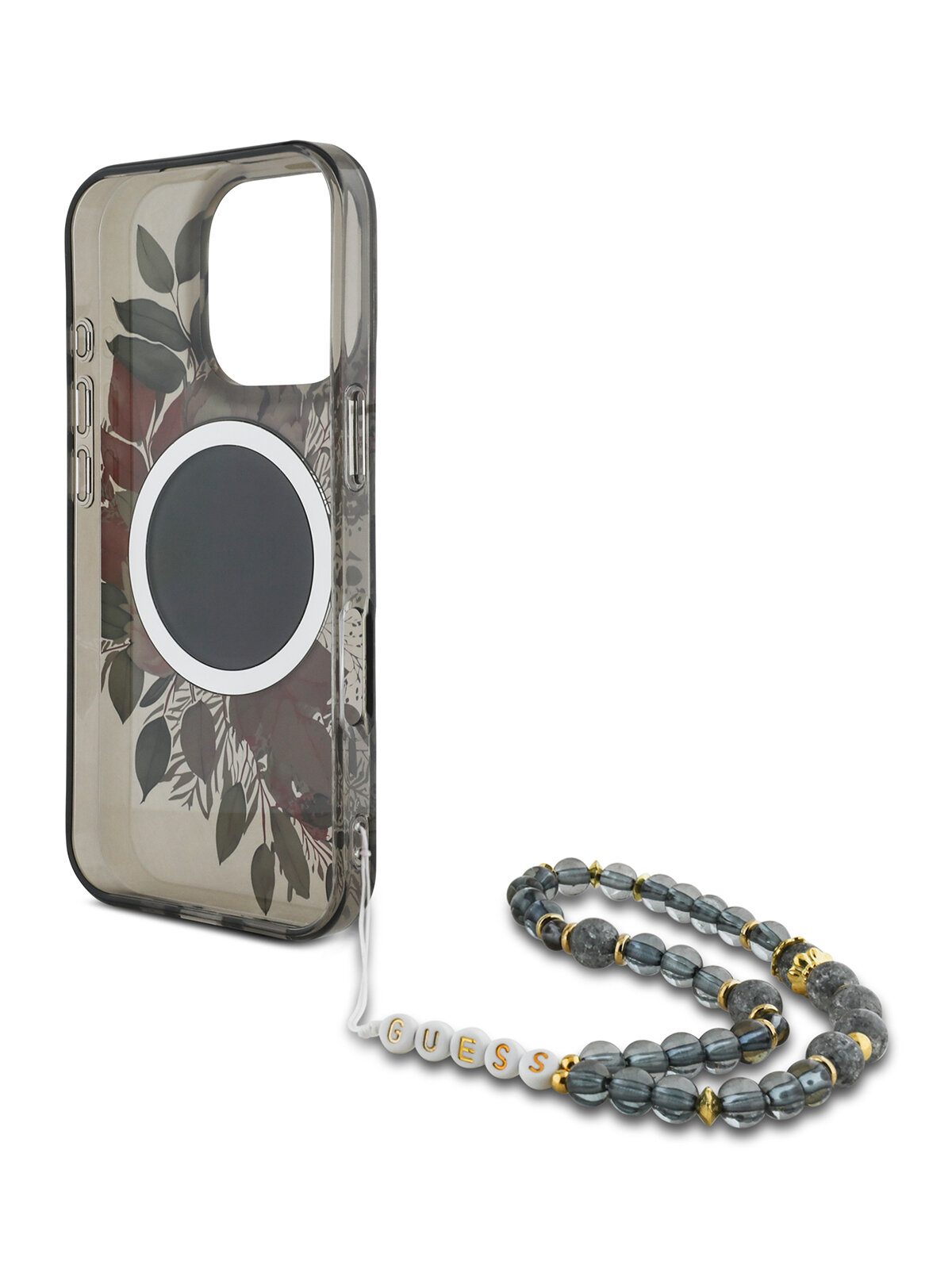Guess для iPhone 16 Pro Max чехол PC/TPU Flowers Hard + Pearl Hand Strap Black (MagSafe): сравнение цен, характеристики, фото, актуальное наличие и цены.