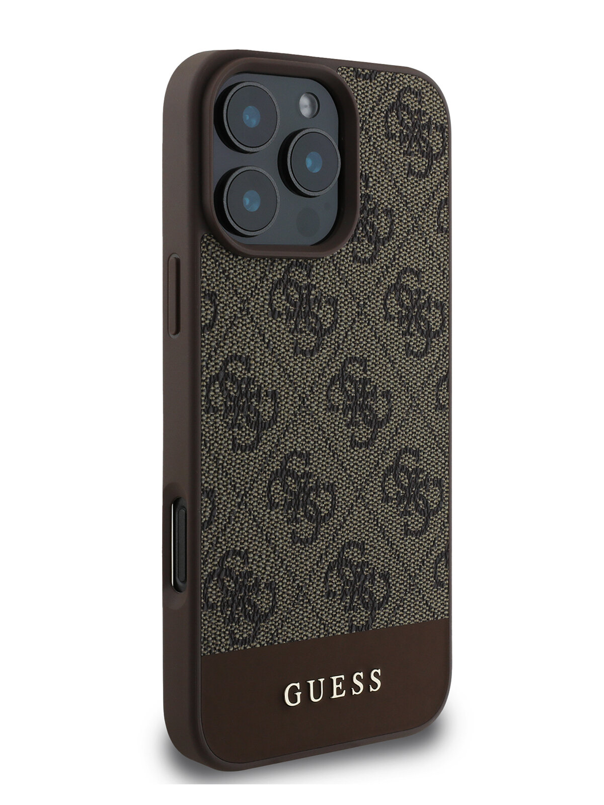 Купить Guess для iPhone 16 Pro Max чехол PU 4G Bottom stripe Metal logo Hard Brown с доставкой по всей России.