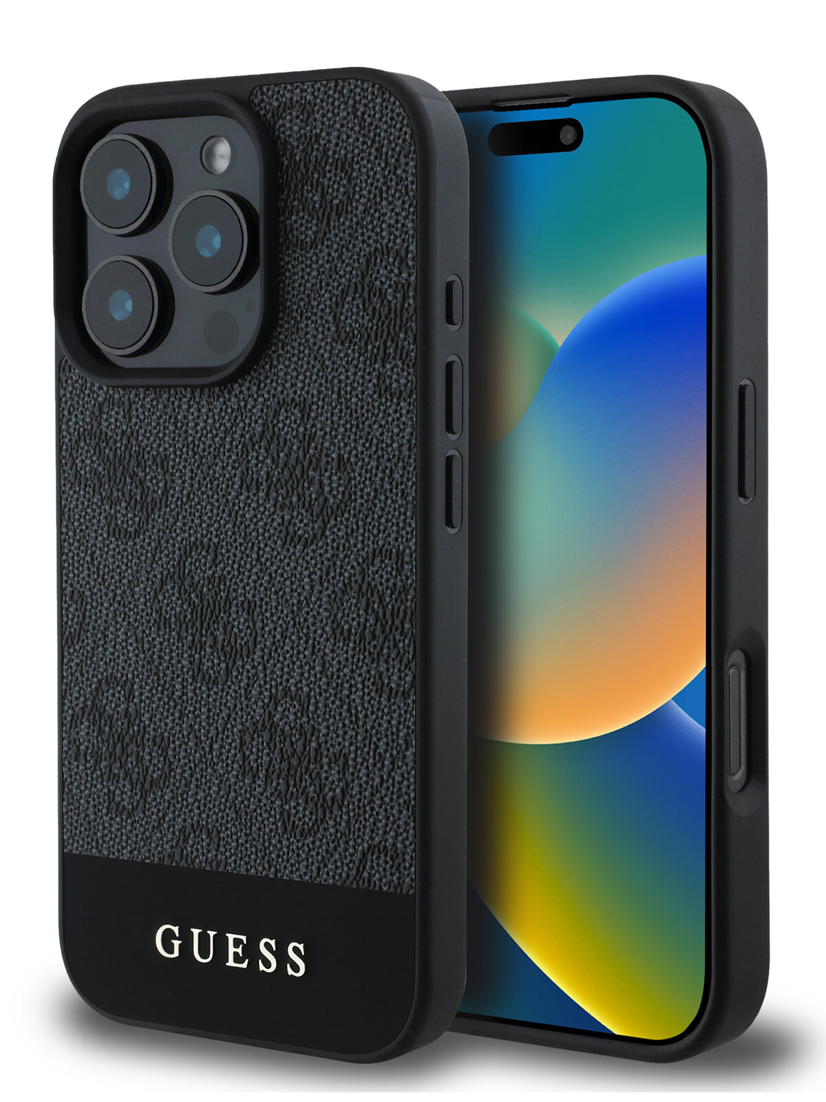 Купить Guess для iPhone 16 Pro Max чехол PU 4G Bottom stripe Metal logo Hard Grey с доставкой по всей России.
