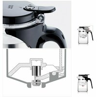 Основная колба изготовлена из боросиликатного стекла. Такое стекло менее подвержено тепловому стрессу, имеет высокую механическую прочность, химическую стойкость и оптическую прозрачность. Всю посуду, сделанную из боросиликатного стекла можно разогревать в духовке и СВЧ печи.