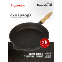 Гурман Сковорода из чугуна, 26 см со съемной ручкой, для индукции, DavrMetall: сравнение цен, характеристики, фото, актуальное наличие и цены.