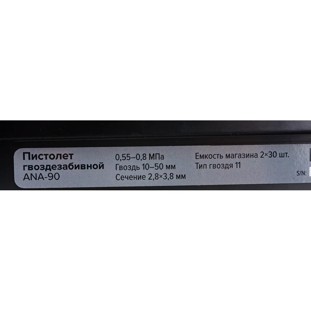 Гвоздезабивной пистолет Кратон ANA-90 3 01 09 004 с магазином, расположенным под углом к обрабатываемой поверхности. Незаменим для работ в местах, где крепёж вбивают под углом – стяжка полов, конструкции, где образован угол и обычным пистолетом сложно производить работы. Рекомендуемый диаметр шланга, дюйм 3/8". Сечение ножки - 2.8 х 3.8 мм.