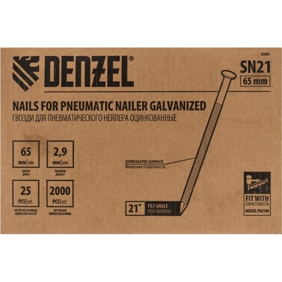 Гвозди для пнев. нейлера (оцинк.) Denzel , длина — 65 мм, диам. — 2,9 мм, 2000 шт, 57685: сравнение цен, характеристики, фото, актуальное наличие и цены.