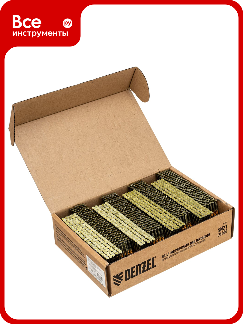Гвозди для пневматического нейлера Denzel (крашен.), длина — 75 мм, диаметр — 3,05 мм, 2000 шт. 57697: сравнение цен, характеристики, фото, актуальное наличие и цены.