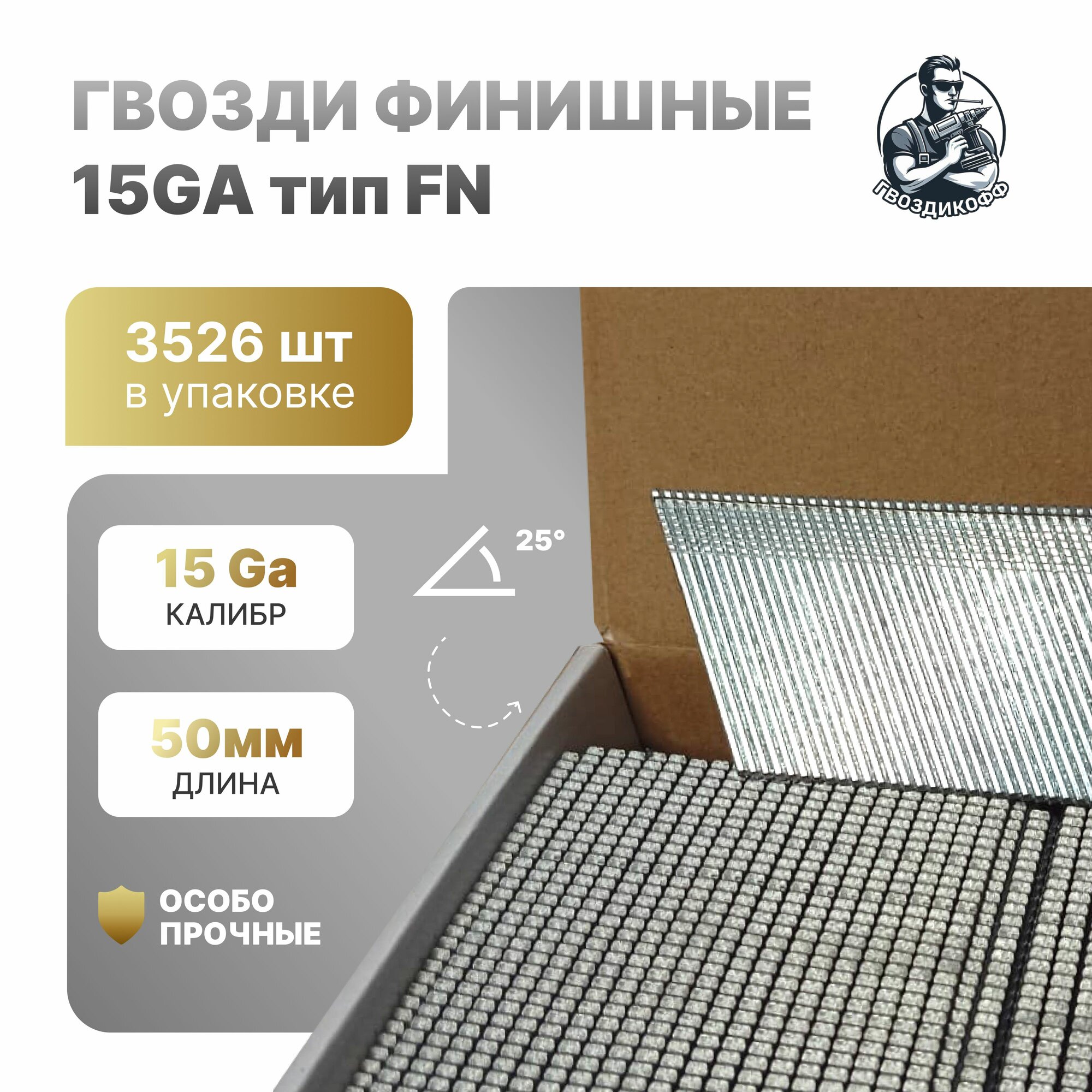 Гвозди финишные 15GA тип FN 50 мм 25 градус 3526 шт: сравнение цен, характеристики, фото, актуальное наличие и цены.
