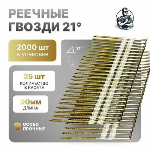 Гвозди реечные 21 градус 3,1/90 мм оцинкованные с кольцевой накаткой RiCnk, 2000 штук: сравнение цен, характеристики, фото, актуальное наличие и цены.