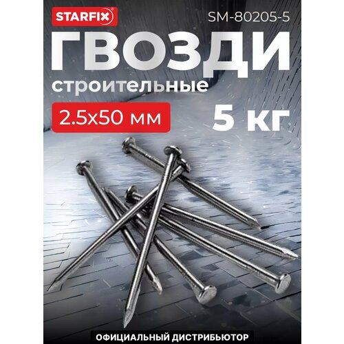 Гвозди строительные цинк 2.5х50 мм ГОСТ 4028-63 5 кг в коробе STARFIX SM-80205-5 - это высококачественный строительный материал, который используется для скрепления различных материалов, в основном деревянных.