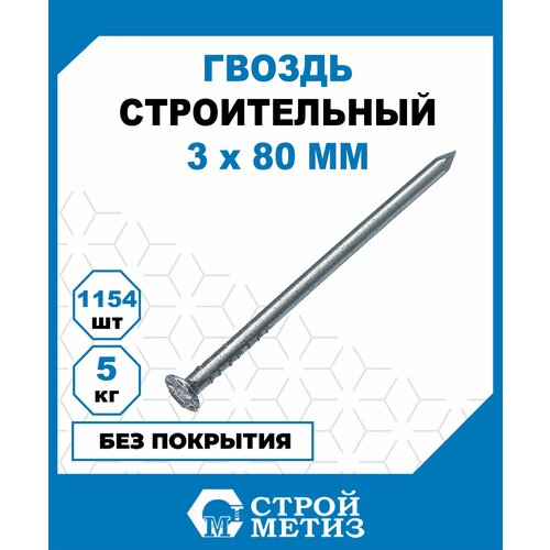 Гвозди Стройметиз строительные 3х80, сталь, без покрытия, 5 кг (1154 шт.): сравнение цен, характеристики, фото, актуальное наличие и цены.