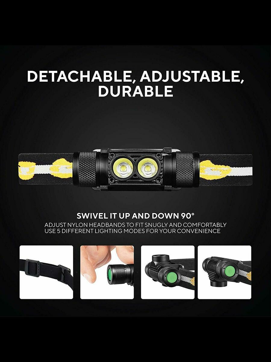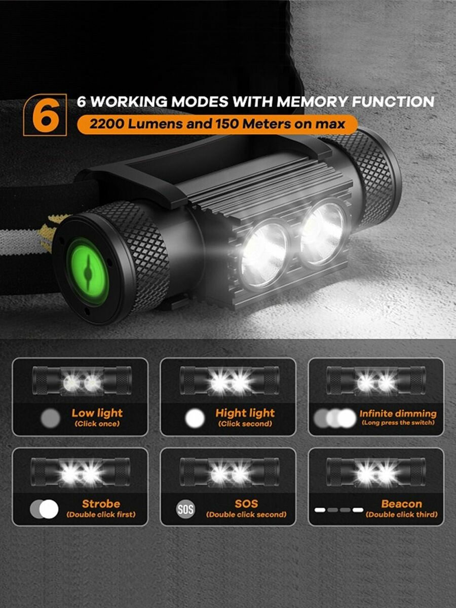 Материал: головной фонарь из алюминиевого сплава + эластичная повязка на голову