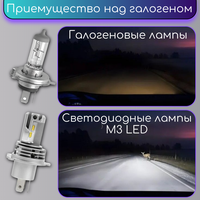 Автомобильные светодиодные LED лед лампы M3 с цоколем H4 предназначены для установки в фары головного света c функцией ближнего и дальнего света. Модель M3 имеет компактные размеры, что позволяет установить её под штатные крышки фары. Мощный светодиодный чип PHILIPS ZES имеет отличную светотеневую границу и хорошую отдачу. Мощность одной лампы равна 27.5w, световой поток 2250Lm и температуру 6500k (холодный белый). Лампа M3 имеет высокоскоростной вентилятор для лучшего отвода тепла, что несомненно сказывается на сроке службы лампы. Рабочее напряжение 9-32v, лампа может быть установлена как в легковой, так и в грузовой автомобиль. Автомобильные светодиодные LED лед лампы M3 с цоколем H4/H19 предназначены для установки в фары головного света c функцией ближнего и дальнего света.