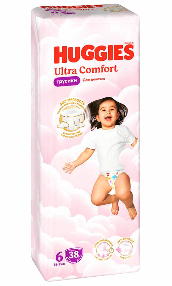 Купить Трусики-подгузники Huggies Ultra Comfort 6, 15-25 кг, 38 шт, Для девочек с доставкой по всей России. Трусики-подгузники Huggies Ultra Comfort 6, 15-25 кг, 38 шт, Для девочек: сравнение цен, характеристики, фото, актуальное наличие и цены.