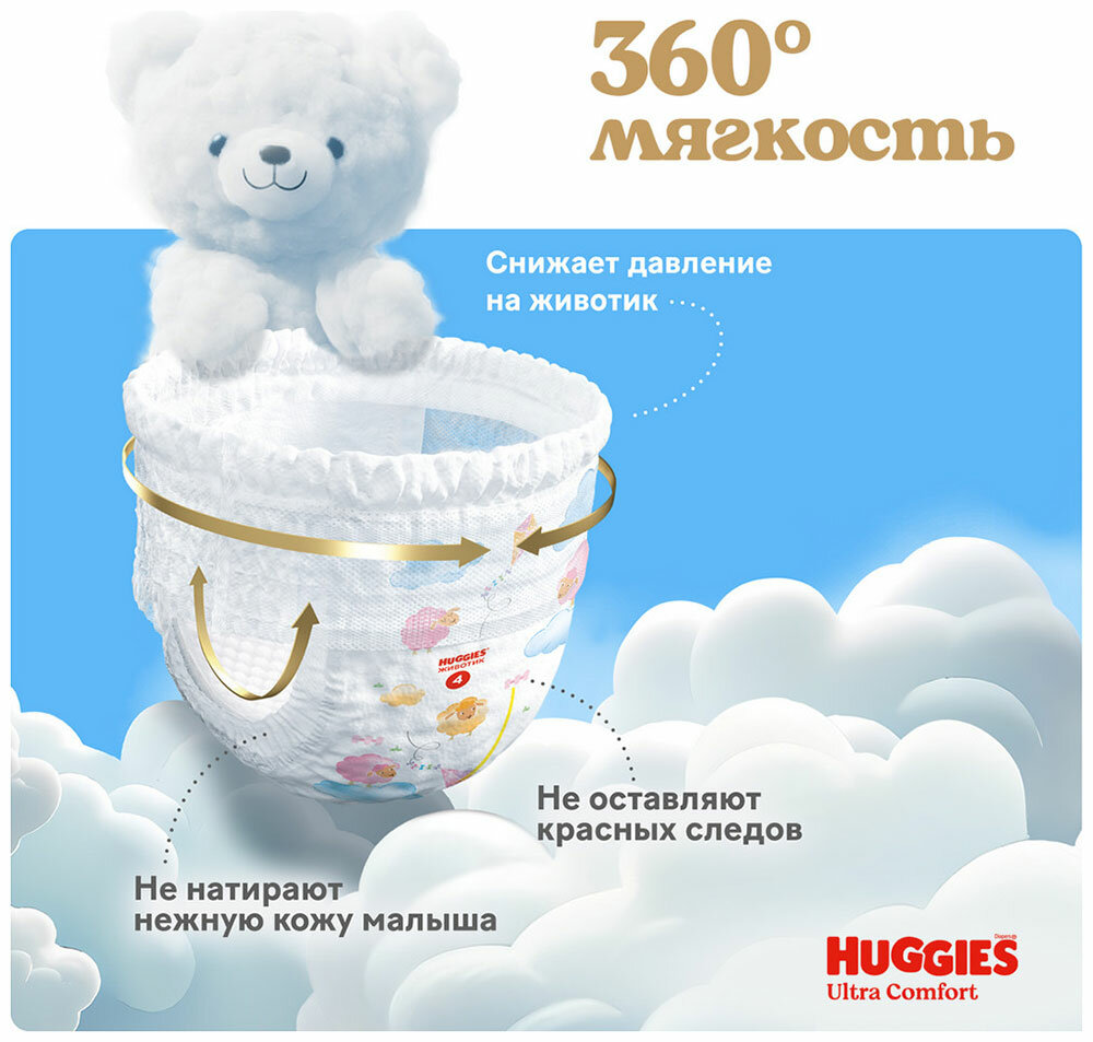 Новые подгузники-трусики Huggies Ultra Comfort для девочек дарят мягкость на 360°: ультрамягкие внутри и снаружи, они словно облачко обнимают вашего малыша. Сделанные из нежных материалов резиночки вокруг ножек и воздушный поясок-облачко снижают давление на кожу и риск появления натираний и красных следов даже при длительном ношении, при этом надёжно фиксируя трусики на ребёнке. В течение дня поясок детских трусиков Хагис 6 размера адаптируется к меняющимся размерам животика, позволяет вашему малышу двигаться свободно и обеспечивает ему максимальный комфорт. Подгузники трусики Хаггис Ультра Комфорт 100% дышащие: благодаря дышащим материалам в составе они пропускают воздух и позволяют коже дышать, не создавая парникового эффекта. Уникальный внутренний впитывающий слой с мягкими 3D-подушечками впитывает жидкость за секунды и нежно касается кожи малыша, защищая ее от соприкосновения с влагой и другими выделениями днём и ночью. Он расположен с учетом анатомических особенностей девочек, максимально впитывая по центру и обеспечивая еще более надёжную защиту и комфорт. Подгузники-трусики Хаггис созданы специально для девочек 15-25 кг, которые активно двигаются — много ползают, делают свои первые шаги или уже уверенно топают по дому маленькими ножками. Особенности: Двойные бортики и четыре эластичные резиночки вокруг ножек обеспечивают дополнительную защиту от протеканий Не содержат отдушек, хлора и латекса - для заботы о коже малыша и о природе Индикатор влаги меняем цвет при намокании, подсказывая, когда придет время сменить трусики Легко надеть — натяните трусики на малыша, легко снять — разорвите боковой шов, легко утилизировать с помощью липкой ленты утилизации Каждый размер товара для малышей Huggies Ultra Comfort – с уникальным дизайном. 2 дизайна в одной упаковке! Основные характеристики: Тип: подгузники-трусики Назначение: для девочек Размер: 6 (15-25 кг) Количество: 38 шт Защита от протеканий: да Индикатор влаги: да Цвет: белый