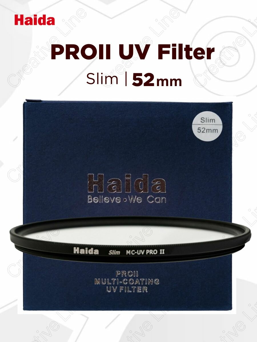 Haida PROII Multi-Coating UV Slim Filter 52mm — защитный ультрафиолетовый светофильтр. Изготовлен из высококачественного оптического стекла K9 с антибликовым покрытием. С обеих сторон имеет несколько слоев нанопокрытия, что предотвращает попадание пыли и влаги на элементы объектива, исключает случайные повреждения.