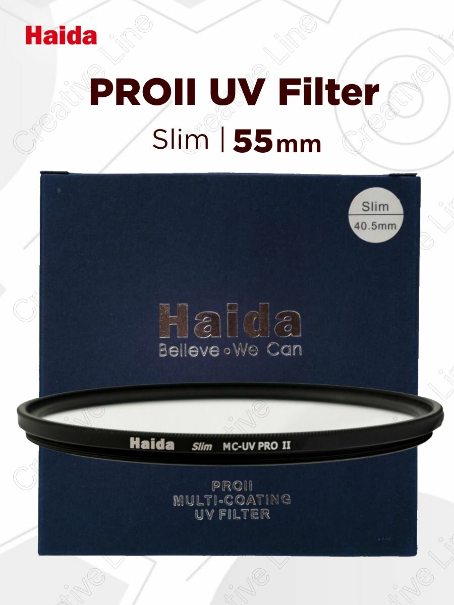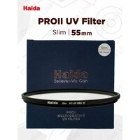 Haida PROII Multi-Coating UV Slim Filter 55mm — защитный ультрафиолетовый светофильтр. Изготовлен из высококачественного оптического стекла K9 с антибликовым покрытием. С обеих сторон имеет несколько слоев нанопокрытия, что предотвращает попадание пыли и влаги на элементы объектива, исключает случайные повреждения.