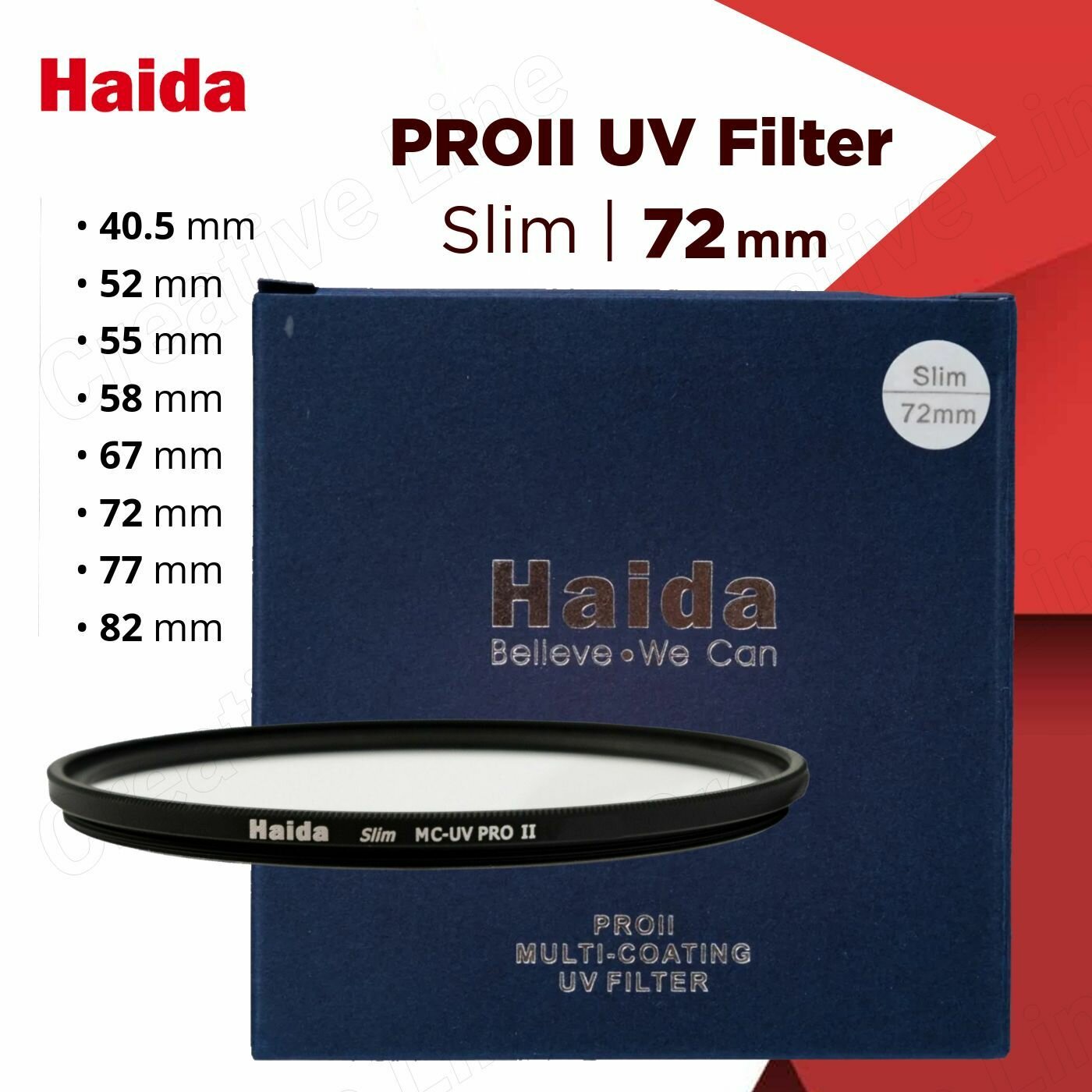 Haida PROII Multi-Coating UV Slim Filter 72mm — защитный ультрафиолетовый светофильтр. Изготовлен из высококачественного оптического стекла K9 с антибликовым покрытием. С обеих сторон имеет несколько слоев нанопокрытия, что предотвращает попадание пыли и влаги на элементы объектива, исключает случайные повреждения.