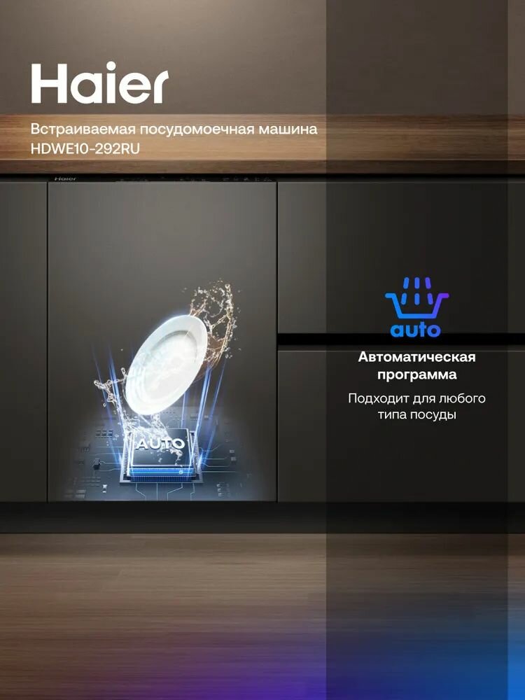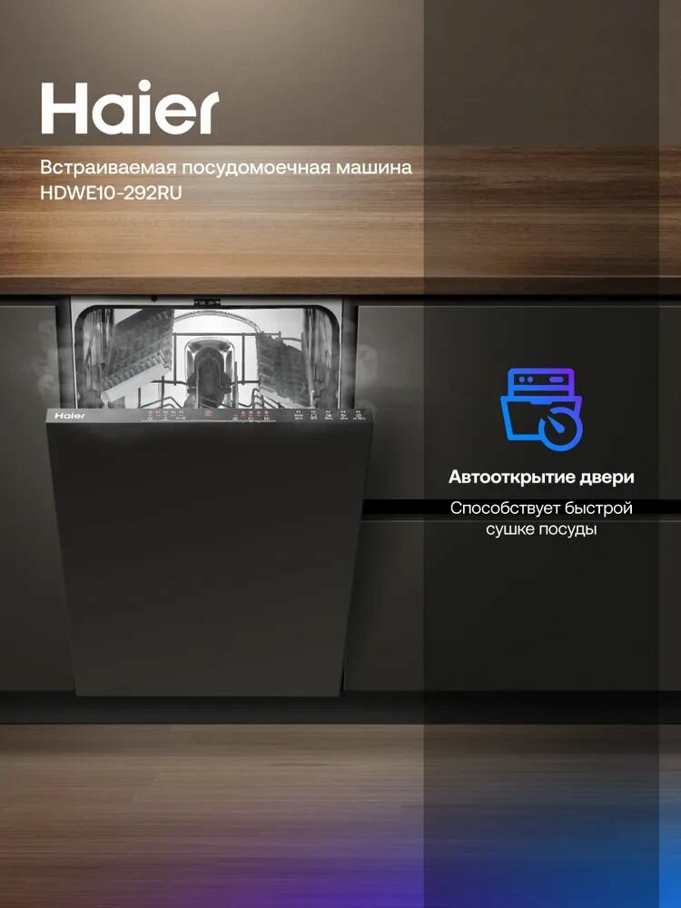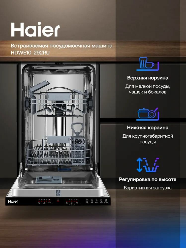 Haier HDWE10-292RU Встраиваемая посудомоечная машина, 44,8 см, серебристая, черная: сравнение цен, характеристики, фото, актуальное наличие и цены.