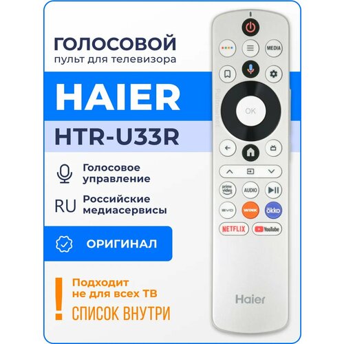 Пульт Haier HTR-U33R K3 (версия с кнопкой "Wink") произведён непосредственно компанией Haier. Пульты HTR-U33R K3 и HTR-U33R K6 отличаются друг друг от друга только расположением индикатор: у K3 он встроен в кнопку включения, у K6 он расположен над кнопкой включения. Голосовое управление активируется после сопряжения, которое выполняется в настройках телевизора. Для работы пульта потребуются две мизинчиковые батарейки (в комплекте нет). Формат поставки: OEM, то есть это не коробочная версия. Инструкции в комплекте нет.