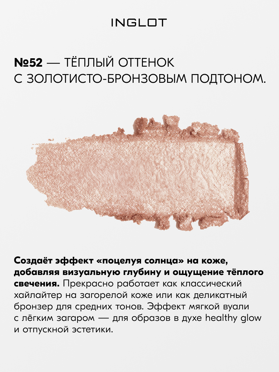 Купить Хайлайтер INGLOT Soft Sparkler 11 г — запечённый, сияющий, для лица, глаз и тела, с ультратонким помолом №52 с доставкой по всей России.