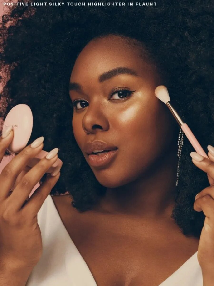 RARE BEAUTY POSITIVE LIGHT SILKY TOUCH HIGHLIGHTER — это инновационный пудровый хайлайтер, который дарит коже мгновенный эффект стеклянного сияния, создавая естественное, но яркое свечение, которое держится весь день. Разработан Селеной Гомес.