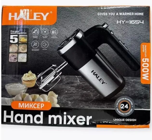 Haley HY-1654, ручной кухонный миксер, 5 режимов скорости, 2 венчика в комплекте, мощность 500 Вт, картонная коробка: сравнение цен, характеристики, фото, актуальное наличие и цены.