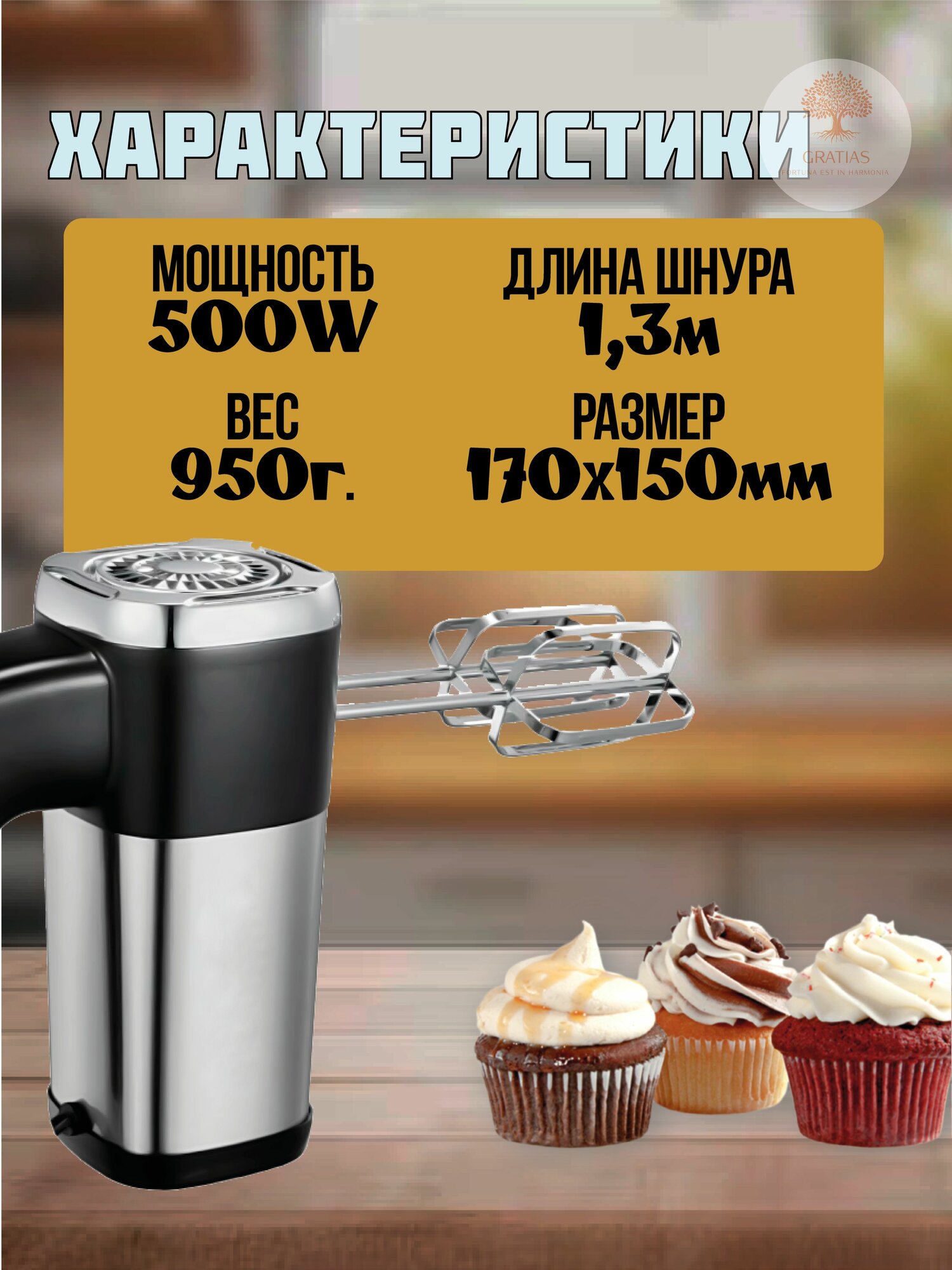 Haley HY-1654, ручной миксер, 5 режимов скорости, 2 венчика в комплекте, мощность 500 Вт, картонная коробка: сравнение цен, характеристики, фото, актуальное наличие и цены.