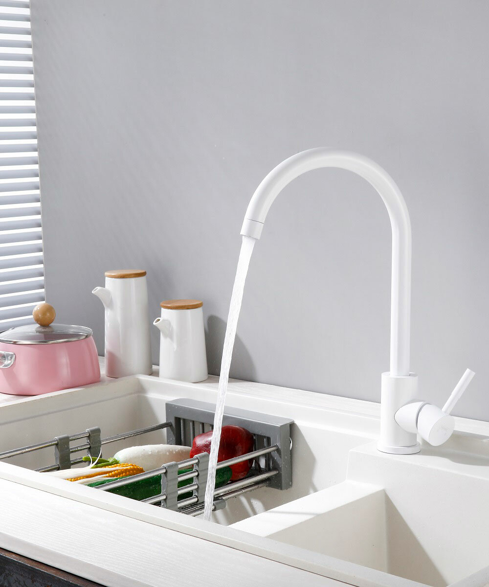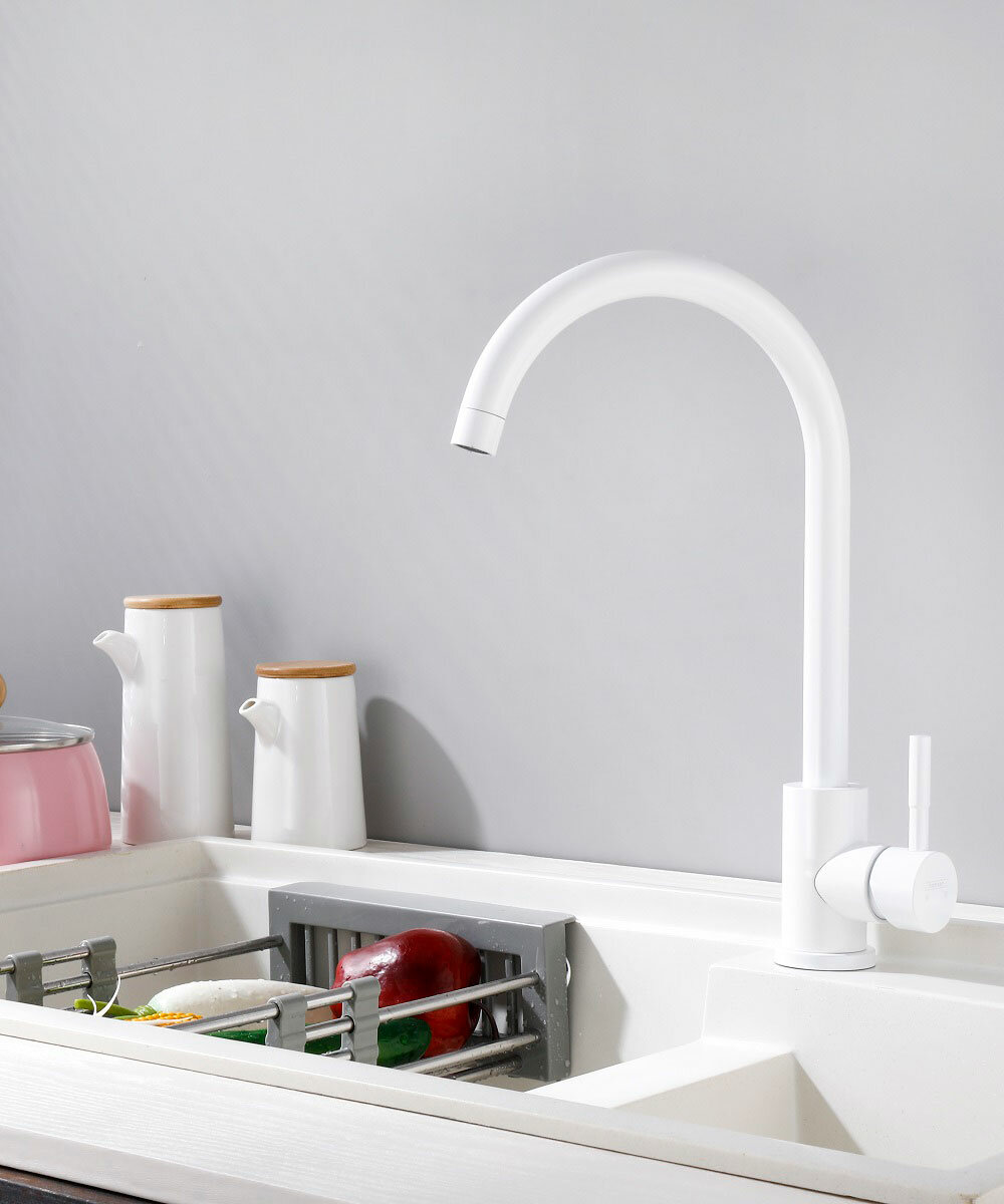 Купить Cмеситель для кухни с поворотным изливом из нержавеющей стали HANSEN H53304F Белый с доставкой по всей России.