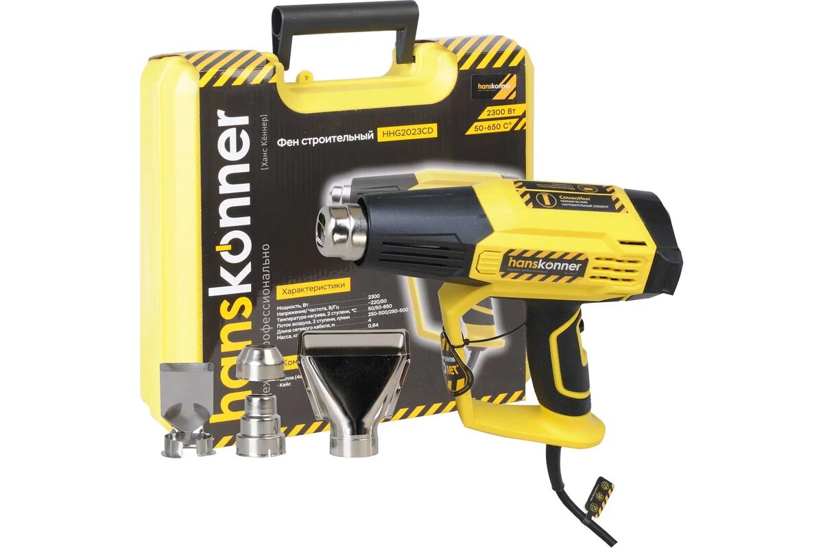 Hanskonner Фен технический, 2300 Вт, 50/50-650C, 250-500л/мин, керам, ЖК-дисп, кейс HHG2023CD: сравнение цен, характеристики, фото, актуальное наличие и цены.