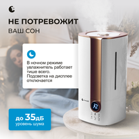 Удобный функционал У Hanzo Z5 есть термометр и гигрометр: их показатели выводятся на компактный сенсорный экран. Можно выставить целевой уровень влажности от 45% до 70%, и увлажнитель будет его поддерживать, включая и выключая подачу пара. Внутри также установлена ультрафиолетовая лампа для очистки воды.