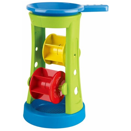 Hape Игрушка для игры в песочнице Мельница Налейте воду, засыпьте песок или мелкие камни в воронку и посмотрите как вращаются колеса! Особенности: Рекомендовано для мальчиков и девочек от 1.5 лет. Простая, но вместе с тем очень занимательная игрушка для пляжа и песочницы Игрушка сделана из качественного пластика, помогает ребенку сформировать общее представление о механизме работе вращающихся механизмов.