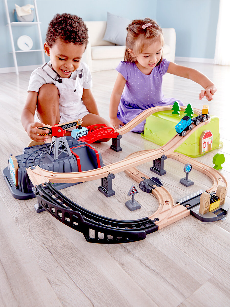 Купить Детская деревянная железная дорога Hape Строительный комплекс E3764_HP с доставкой по всей России.