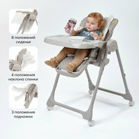 Стульчик для кормления WILLIAM PRO – это стильный внешний вид и супер-характеристики. Подходит для самых маленьких – спинка имеет 4 угла наклона, а подножка – 3. Сиденье стульчика снабжено съёмной текстильной вкладкой-матрасиком. У съёмной столешницы 3 положения по длине – еда будет падать на накладной поднос, а не на одежду ребёнка. Съёмный поднос можно мыть в посудомоечной машине. WILLIAM PRO максимально мобилен – все 4 колеса поворотные и снабжены тормозами. Легко складывается, компактен при хранении.
