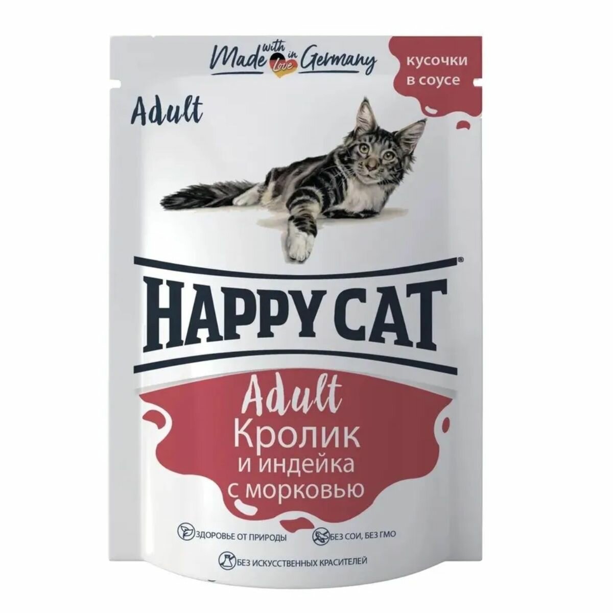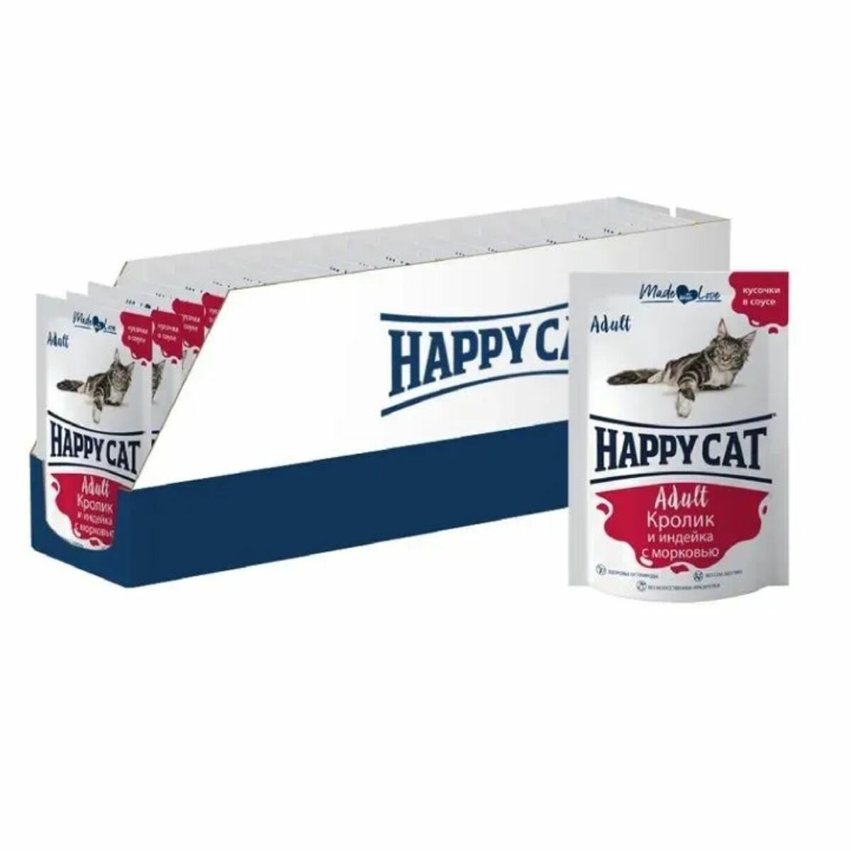 Паучи Happy Cat Корм для кошек, кусочки в соусе кролик и индейка с морковью» 85 гр х 24шт: сравнение цен, характеристики, фото, актуальное наличие и цены.