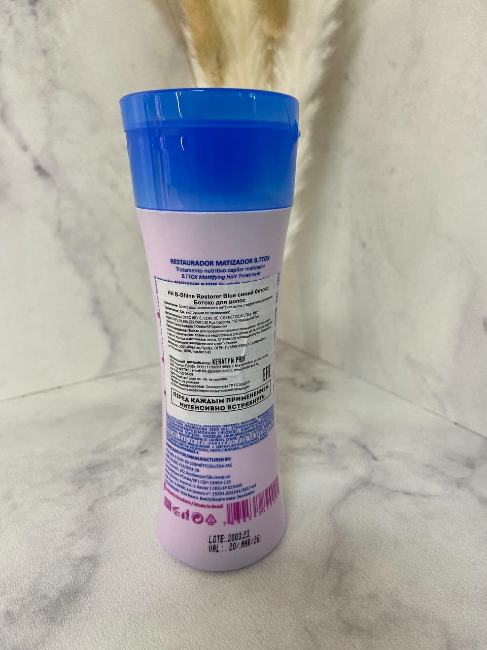 Ботокс с синим пигментом. С высокой силой восстановления слабых, обесцвеченных, безжизненных волос. Возвращает волосам живость, блеск, восстанавливает эластичность. Имеет минимальные выпрямляющие свойства. Больший акцент направлен на восстановление волос. Основной элемент ботокса - масло прокакси (из семян дерева Амазонии), масло стимулирует клеточное обновление волос, оказывает мощный омолаживающий эффект, заживляет, питает и стимулирует рост здоровых волос. Значительно облегчает расчесывание.