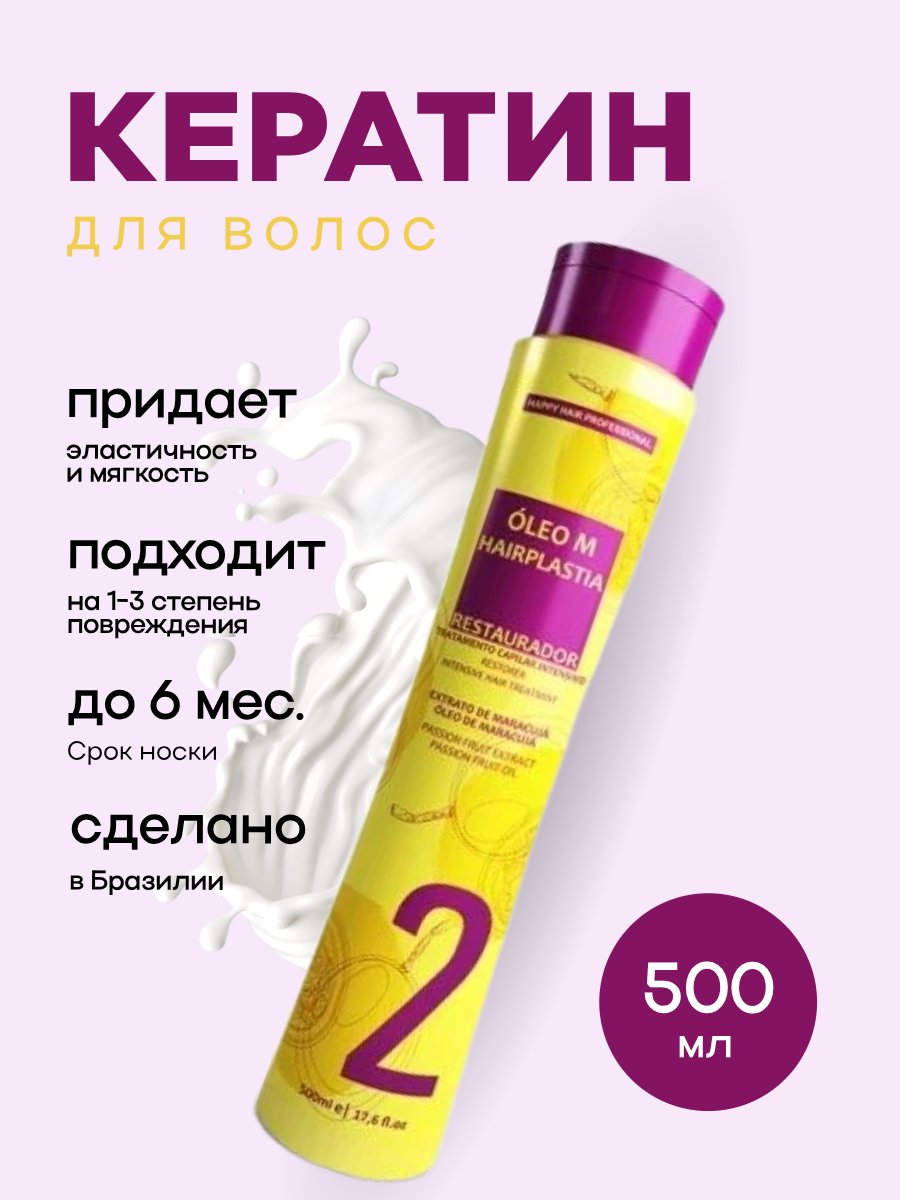 Купить Кератин для волос Happy Hair Professional Oleo M Hairplastia 500 мл желтый с доставкой по всей России.