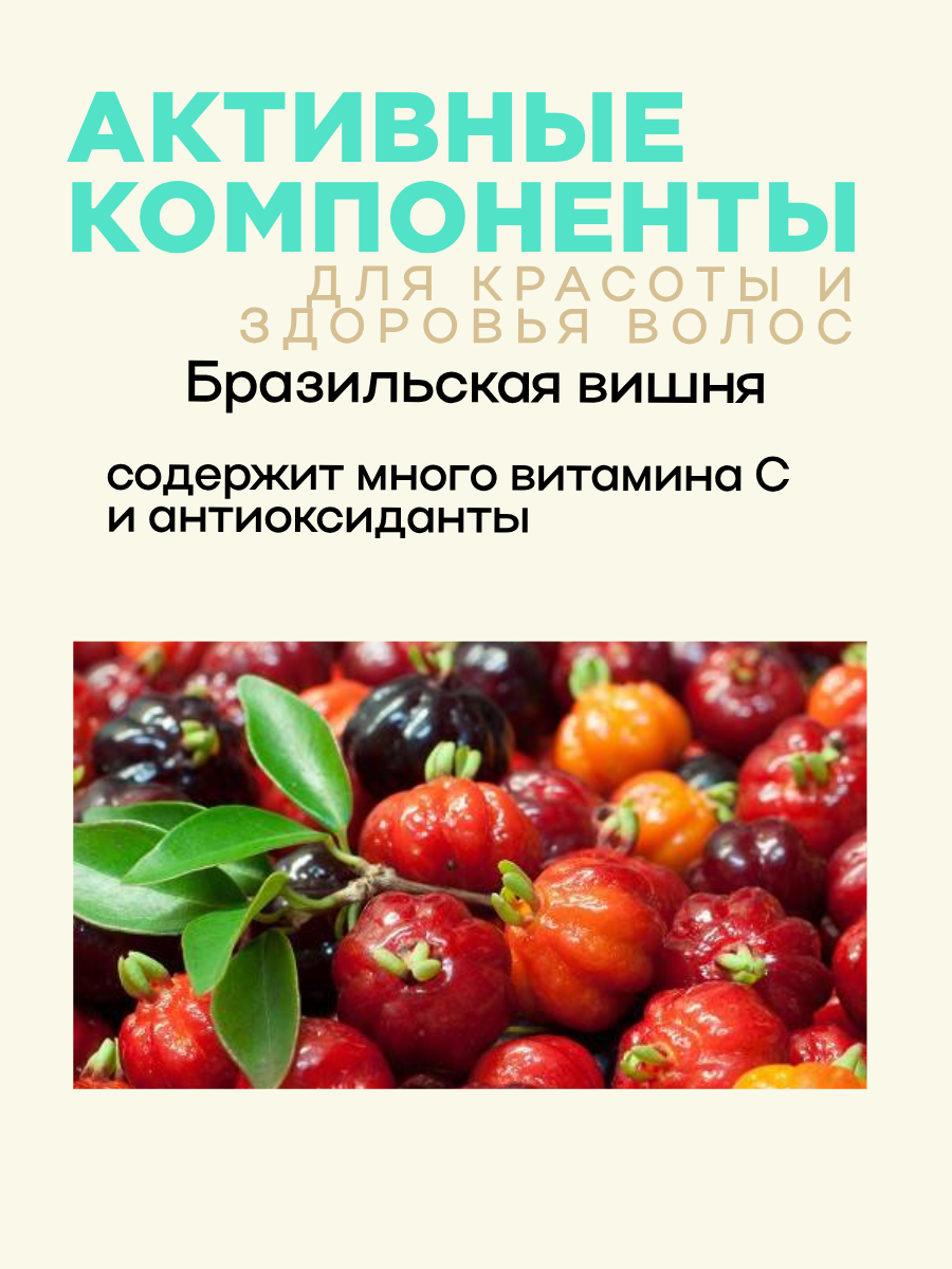 Входящие в состав активные компоненты: Масло миндаля, Бразильская вишня, Алоэ вера экстракт, Масло Ши, Копайский бальзам, Гидролизованный кератин, Экстракт ягод асаи.