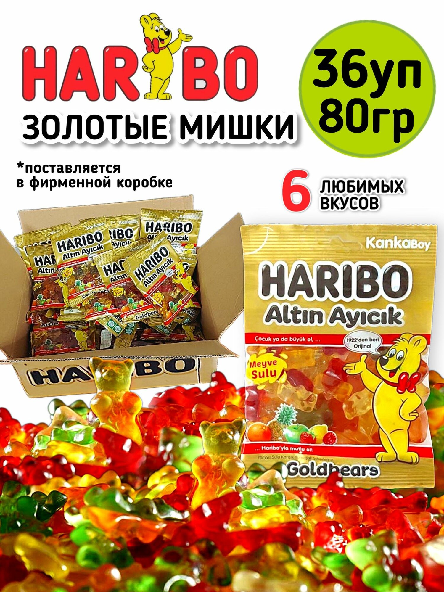 Жевательный мармелад HARIBO Мишки - это необыкновенный мармелад. В меру сладкий, с подчеркнутым ароматом тропических фруктов. Желейные конфеты в форме мишек- любимое мармеладное лакомство и взрослых, и детей, богатое витаминами, произведенное в Турции (HALAL). Жевательный мармелад в форме фигурок мишки, отличается не только отменным вкусом и ароматом, но и полезными свойствами, так как он производится на основе желатина. Конфеты очень сочные, за счет концентрированного сока в составе. Каждой мармеладной фигурке соответствует свой вкус. Мармеладные мишки - самый популярный вид жевательного мармелада среди детей. Мармеладный микс из фруктовых фигурок в форме мишек, точно придется по вкусу не только детям, но и вернет в детство взрослых.